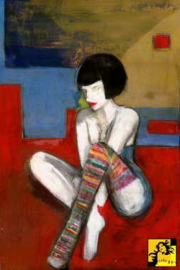 Pastel olejna, akryl, kredka na plótnie 90x50