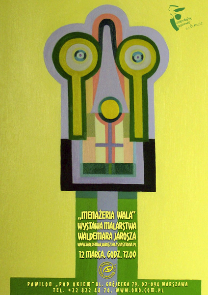 Menażeria Waldemara Jarosza to swoiste panopticum, pokazujące świat ludzi i zwierząt w krzywym, bardzo kolorowym i nieco groteskowym zwierciadle. Autoportret jest świetną karykaturą, w której celowo przerysowuje niektóre cechy swej osobowości - ukazując ironiczne i zdystansowane spojrzenie na samego siebie. Kilka innych portretów namalował w konwencji groteskowej wizualizacji, której efekt podkreśla i wzmacnia nierealna kolorystyka. W ustawionym przez malarza zwierciadle – jak w dawnym gabinecie śmiechu - widzimy dziwne twarze, będące (chyba) swego rodzaju pamfletem wobec naszego gatunku.