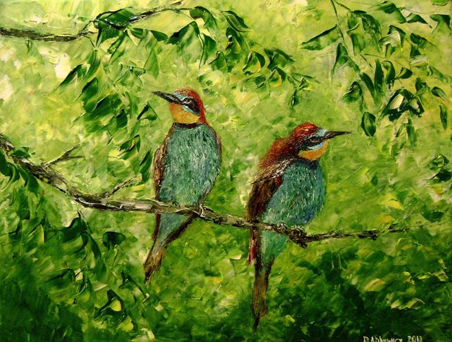 Olejne konterfekty zwierząt – kur, kogutów, kaczek i koni (efekt ostatnich plenerów) – to także zwierzęca parabola, komiczna narracja artysty, pokazująca typowe ludzkie wady - kokieterię (Czy nie jestem piękna?), żądzę władzy (Władca podwórka) i pychę (Macho).